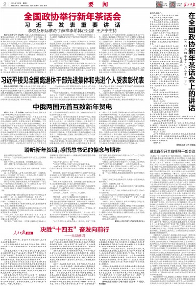 茶话会由中共中央政治局常委、全国政协主席王沪宁主持。他指出,要认真学习贯彻习近平总书记重要讲话精神,毫不动摇坚持中国共产党的全面领导,牢牢把握人民政协性质定位,坚持围绕中心、服务大局,以改革创新精神推进履职能力建设,坚定信心、团结奋进,为全面完成2025年我国经济社会发展目标任务广泛凝心聚力,为以中国式现代化全面推进强国建设、民族复兴伟业而不懈奋斗。
