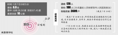 1月7日9时5分,在西藏日喀则市定日县发生6.8级地震,震源深度10公里,地震造成重大人员伤亡,大量房屋倒塌。