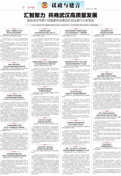 1月9日,政协武汉市第十四届委员会第四次会议第二次全体会议举行,19位市政协常委、委员作大会发言。现将发言摘登。