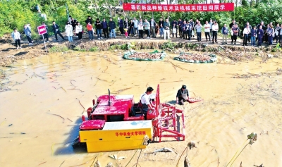 张国忠1993年毕业于华中农业大学,随后留校任教,30余年来一直从事农机方面的研究。他最开始的研究方向是水稻等作物的相关机械,后来积极响应国家号召,勇挑重担踏进了水生蔬菜机械这一领域。“最大的感受是难。一方面,本身研发的技术难度就很大;另一方面,以莲藕为代表的水生蔬菜在很长时间里都没有完整的产业体系支撑,很多工作推进起来很困难。”张国忠介绍,“直到2017年,国家特色蔬菜产业技术体系建立,专门设立了水生蔬菜机械化岗位,我们的科研工作才真正走上正轨。”