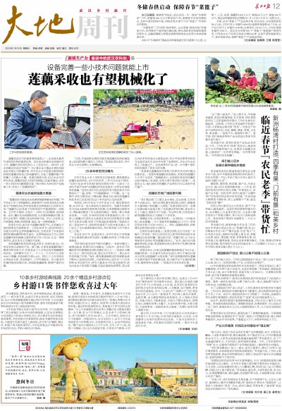 在现有设备的基础上,张国忠团队还在寻求进一步提升工作效率。“我们正在研究怎么使用各种前沿技术来准确定位泥里的藕。”康启新介绍,“图像识别、北斗定位等新技术也将应用到莲藕采收机上。”此外,他们还与莲藕育种团队沟通,希望能够培育出更有利于机械化管理和采收的品种。