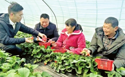 李发斌(左二)和村民商量春节期间草莓出村进城销售事宜。