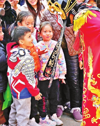 1月12日,解放公园里,川剧变脸受到市民和游客热捧。特别是小朋友们,争相与表演者交流。