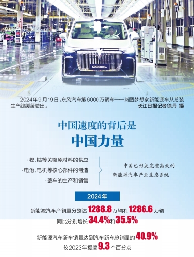 绿色浪潮持续涌动,“中国速度”的背后是“中国力量”。从锂、钴等关键原材料的供应,到电池、电机等核心部件的制造,再到整车的生产和销售,我国已形成完整高效的新能源汽车产业生态系统。