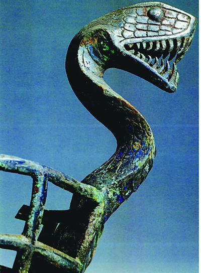 云南江川李家山51号墓出土的蛇形镂空铜器,现藏云南江川李家山考古工作站。