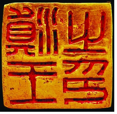 云南晋宁石寨山出土的“滇王之印”,现藏中国国家博物馆。汉代封赐南方蛮夷君长,多以蛇纽印。