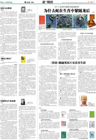 蛇年即将来临,北京大学教授李零在《十二生肖中国年》中写道,中国的十二生肖就像悬在天空中的大钟,指针是北斗,斗转星移,一年又一年,十二年一个轮回。一点是鼠,两点是牛,三点是虎……六点是蛇,十二点是猪,这就是中国年。而十二生肖中的各种动物,家畜、野生各占一半。李零认为,龙的原型是长达10米以上的大鳄鱼,所以也可以归入野生。对于每一种生肖,李零都从文化、文字、考古、生物等方面去解读;那么关于蛇年,又有什么讲究呢?
