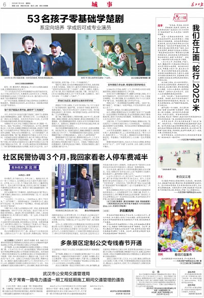 长江日报讯(记者陶常宁 通讯员万建国 刘亭 冯斌)为方便市民和游客春节假期参加文体活动,武汉公交集团将开通多条定制公交专线,其中两条景区定制公交专线免费。