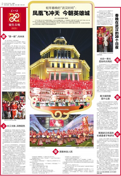 从2024年12月27日的第一场录制,到2025年1月28日除夕当天,春晚武汉分会场的盛大亮相,长江日报记者追访春晚在武汉的30个日日夜夜,为你解密幕后的点点滴滴。