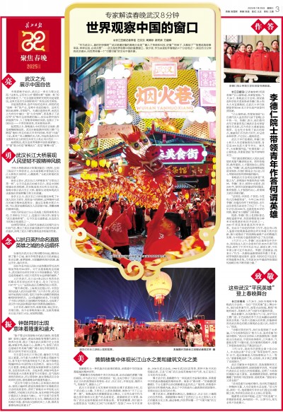长江日报讯 1月28日,2025央视蛇年春晚武汉分会场,一位位“平民英雄”登上舞台中央,他们或参演节目,或零点送祝福,展现“英雄的城市,英雄的人民”对新年的蓬勃热望。