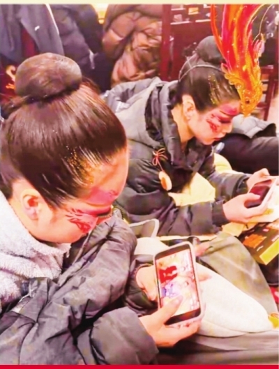 演员候场时看总台春晚直播。