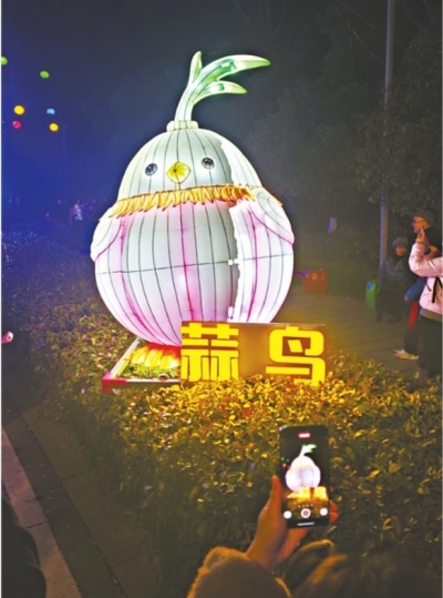 武汉园博园里的蒜鸟花灯。