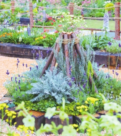 我先透露一个“彩蛋”:这里有一座现实版“QQ农场”,各种芳香植物、药用植物、蔬菜、水果和花卉都被整整齐齐地种在枕木花坛里,就像把我们小时候玩的游戏搬到了现场。在这里,你可以观察到日常吃的很多水果的最原始状态,比如蓝莓、草莓、葡萄、番茄等;你还可以看到很多著名的芳香植物和药用植物,比如迷迭香(西餐常用香料)、薰衣草(安神精油原材料)、天竺葵(著名药用植物)、小苍兰(香水原材料)。这样一座花园简直是色香味俱全,是不是很有意思?