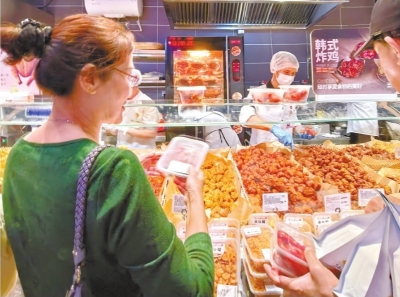 4月16日,我乘地铁来到了这家很火爆的永辉超市。一进入超市,就被琳琅满目的场景吸引。逛了一会儿,我渐渐品味出这家超市的诸多妙处:合理的动线设计不过是它的基本操作;超市内贴心地配备了洗手台,上面安装着镜子,洗手液、擦手纸一应俱全;熟食区采用明档操作模式,营造出浓郁的烟火气息,在灯光的映照下,新鲜出炉的食品泛着诱人的光泽,让人垂涎欲滴。