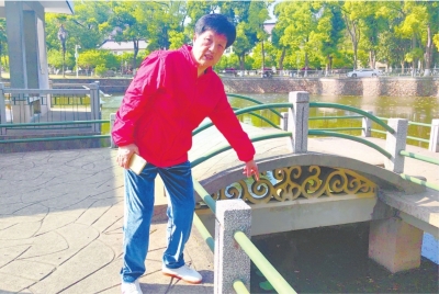 这位心急如焚的女士姓杜,落水的是她2岁4个月大的孙子。74岁的石丹凤女士正在池塘边打电话,循声望去,看到杜女士惊慌失措的模样,石丹凤瞬间意识到情况危急。她没有丝毫犹豫,立刻丢掉手机,一边朝着九曲亭方向飞奔,一边快速解下身上的挎包,随手摘下墨镜甩到一旁。