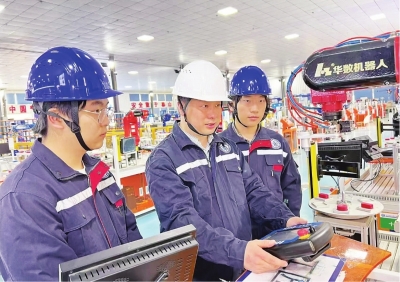 记者在工业机器人实操教室再次见到曹庭文时,他正与华中数控技术人员联合指导学生操作设备。明亮的实验室里,曾用于检修电梯的扳手已化作精密的控制器按钮。他的工作不再是寻找故障,而是根据生产场景需要,从零教会工业机器人做事。