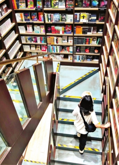 女孩在钟书阁里拾级而上,两侧是一排排图书。4月23日是世界读书日,图书如同一座桥梁横跨时空,一端连着当下的我们,一端通向充满无限可能的未来;我们每翻开一本书,就是踏上桥梁的一步,在字里行间汲取力量、积攒智慧,向着更辽阔的未来前行。