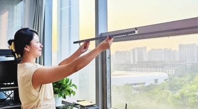恩倍思总经理尹晴云正在展示企业自主研发的灯具。