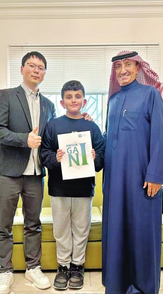 胡保明(左一)在沙特推介完产品后与客户合影。
