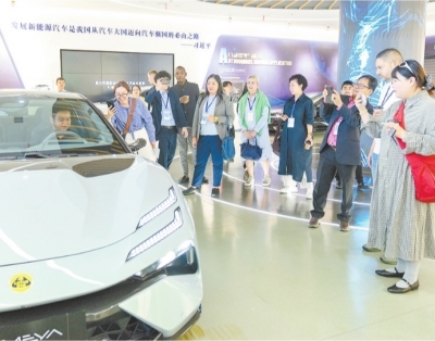 国际友城代表参观体验豪华新能源汽车。