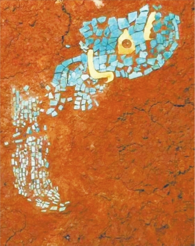 盘龙城遗址出土的绿松石镶金片饰件,这也是我国目前所见最早的绿松石镶金饰件。
