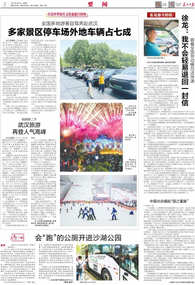 武汉旅联东湖物业公司一位工作人员介绍,黄鹤楼公园共有450多个停车位,截至2日14时,当天已先后停泊车辆1116辆,外地车占了多数,排名靠前的是河南、江西、湖南等省份的车辆,也有北京、浙江、广东等地的车辆。