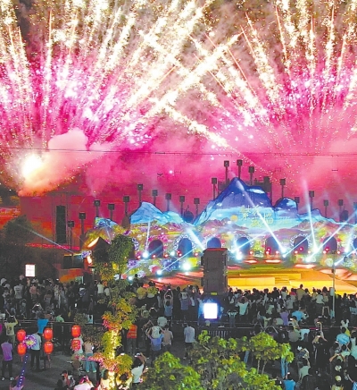 花博汇景区激情上演烟花秀。