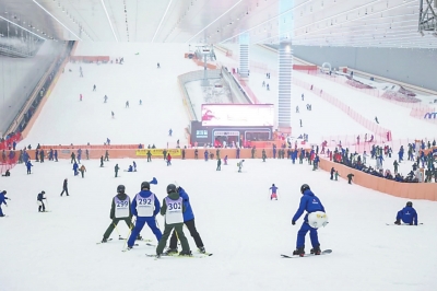位于黄陂区甘露山文创城的甘露山国际滑雪场,尽管室外气温已近30℃,但这座华中地区规模最大的室内滑雪场依然保持着-6℃的低温,让游客体验“反季节”冰雪运动的魅力。两天近10万人次奔涌而来,尽情在冰雪世界里撒欢。令人意外的是,不少游客赶来这里还因为“与雪无关”。