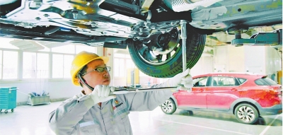 冯月兵在车辆出厂前,对汽车“望闻问切”。
