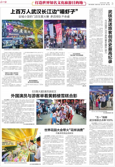 接下来,武汉将举办“烟火武汉·遇见知音”2025武汉长江旅游季活动。其中,“潮武汉”系列通过联动武汉全市各大旅游景区和商文旅体融合型消费场景,策划开展多项活动。“遇知音”系列主要通过打响“知音”文化品牌,策划举办系列演唱会、音乐节、文艺汇演活动。
