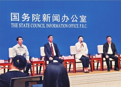 6月6日,国务院新闻办公室举行“新征程上的奋斗者”中外记者见面会,程星(右二)介绍传承大别山精神的生动实践。