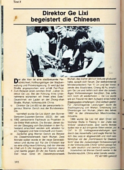 格里希是改革开放后中国的首位“洋厂长”。1984年,武汉市开全国风气之先,通过德国友城杜伊斯堡市联系当地退休专家组织,成功聘请了发动机制造和铁芯技术专家格里希担任武汉柴油机厂厂长。