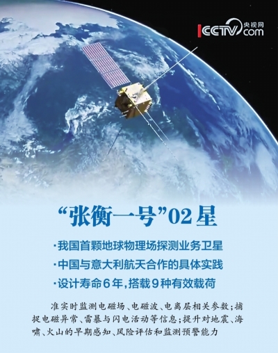 据介绍,“张衡一号”02星设计寿命6年,搭载了9种有效载荷,包括中国与意大利合作研制的电场探测仪、意大利研制的高能粒子探测器等,将对全球电磁场、电磁波、电离层、中性大气层的相关参数开展准实时监测,捕捉地质活动与人类活动引发的电磁异常、大气层中雷暴与闪电活动等信息,可有效提升我国对地震、海啸、火山活动、雷暴等重大自然灾害的早期感知、风险评估和监测预警能力,为应急管理、资源测绘、通信导航等行业提供数据支撑,助力共建“一带一路”国家相关领域科技合作。