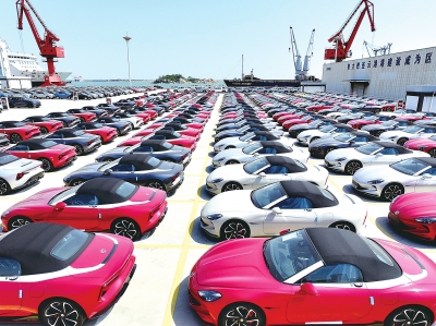 6月16日,在江苏省连云港港东方港务分公司码头,大批车辆等待装船外运。