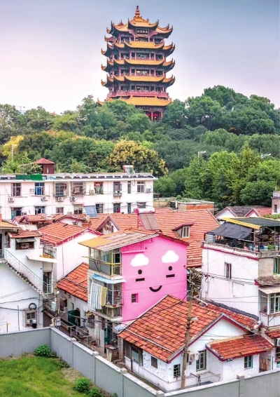 “2023年,我们联系涂鸦爱好者并协调相关住户,利用八卦井小游园宽阔视野,让云朵、笑脸跃上老墙,给游客一个仰望黄鹤楼的诗意新角度,没想到一下子就‘出圈’了。”西厂口社区相关负责人说,此后手绘的“一面墙”就像一把钥匙,打开了老街巷被忽略的风景。