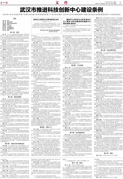 湖北省第十四届人民代表大会常务委员会第十七次会议决定:批准《武汉市推进科技创新中心建设条例》,由武汉市人民代表大会常务委员会公布施行。