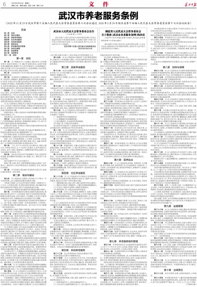 湖北省第十四届人民代表大会常务委员会第十七次会议决定:批准《武汉市养老服务条例》,由武汉市人民代表大会常务委员会公布施行。