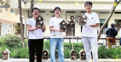 上海山北小区,艺术家们邀请居民利用花园废料为公园内的昆虫设计栖息地。
