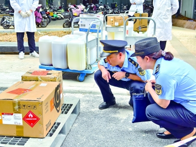 工作人员详细检查危废品的转运流程。