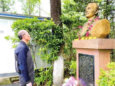 近日,长江日报记者来到武汉市烈士纪念园(九峰山),傲然挺拔的苍松翠柏似乎在向长眠于此的英烈致以敬意。在烈士广场左侧的铜像雕塑群,11位烈士的铜像静默伫立,其中就有武汉籍抗日烈士陈柱天,铜像人物身着笔挺西装,嘴角带着笑意,深情凝望着这片他为之挥洒热血的土地。