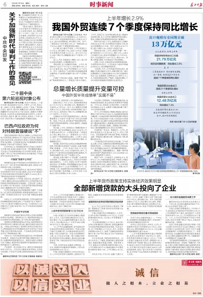 “总的看,今年上半年我国外贸顶压前行,规模稳中有增、质量优中有升,成绩实属不易。”海关总署副署长王令浚在国新办14日举行的新闻发布会上说,也要看到,全球单边主义、保护主义上升,外部环境的复杂性、严峻性、不确定性增加,下半年我国外贸稳增长仍需要付出艰苦努力。