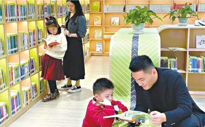 市民带着孩子在光谷中央生态大走廊城市书房共度温馨时光。