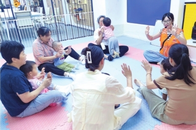 澜菲溪岸社区内,居民们正在儿童成长空间内上早教课。