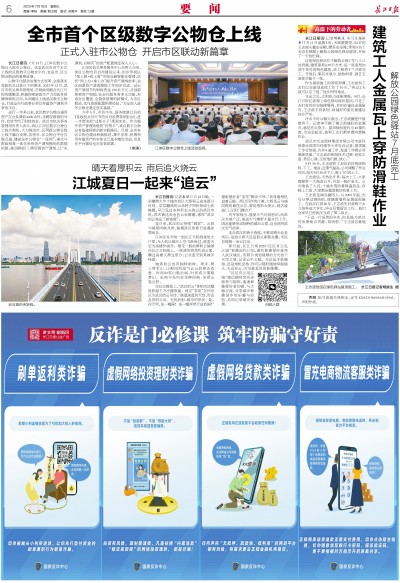 长江日报讯(记者明眺生 实习生高依希)7月11日凌晨5时,天刚蒙蒙亮,54岁的王志波头戴安全帽,腰系安全绳,带领5名工友沿长梯爬上解放公园绿色驿站屋顶,开始了一天的忙碌。