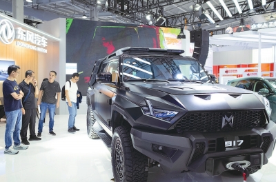 观众在服贸会首钢园区的东风汽车集团展台了解一款新能源汽车。