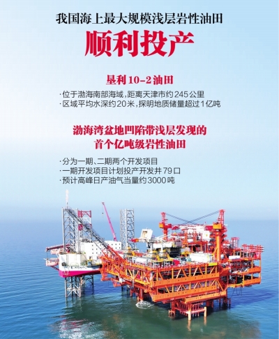 中国海油22日宣布,位于我国渤海的亿吨级油田——垦利10-2油田群开发项目(一期)顺利投产,标志着我国海上最大规模浅层岩性油田正式进入生产阶段。