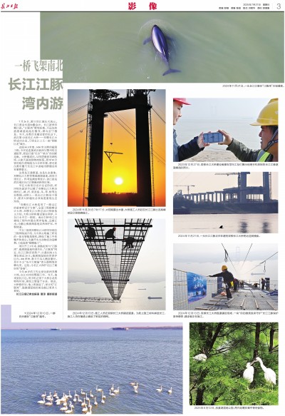 2024年11月28日7时17分,太阳刚露出水面,大桥施工人员赶在长江江豚出没高峰时段之前错峰施工。