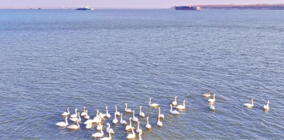 2024年12月13日,一群白天鹅在“江豚湾”越冬。