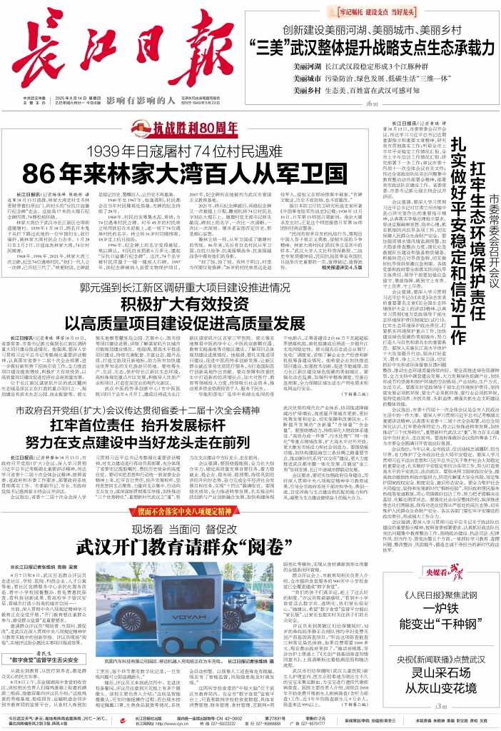 1 头版 2 要闻 3 要闻 4 抗战胜利80周年 6 牢记嘱托 建设支点 当好龙头 7 江花 8 江花
