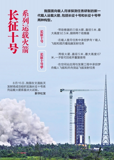 8月15日下午,我国在文昌航天发射场成功组织实施长征十号系列运载火箭系留点火试验。这是继圆满完成梦舟载人飞船零高度逃逸飞行试验和揽月着陆器着陆起飞综合验证试验之后,我国载人月球探测工程研制工作取得的又一项重要阶段性突破。